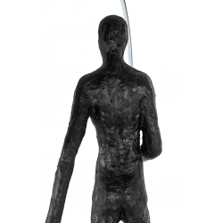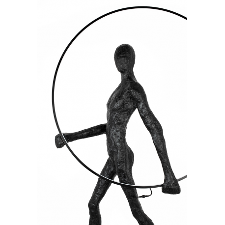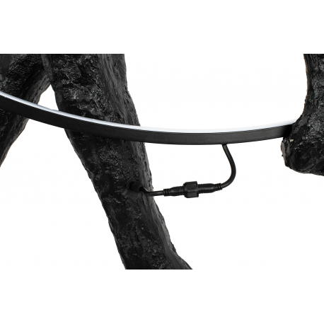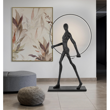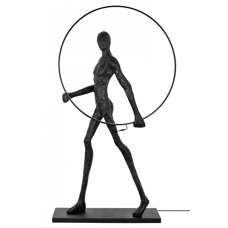 Lampa podłogowa HUMAN ROUND. Wykonana z włókna szklanego, stali oraz aluminium. Czarny kolor i sylwetka człowieka, tworzy nowoczesną dekorację niemal każdej przestrzeni. Obręcz skrywa ledowe źródło