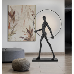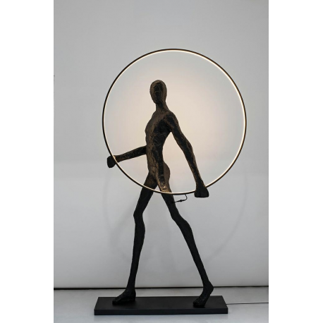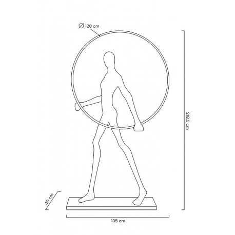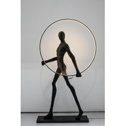 Lampa podłogowa HUMAN ROUND.Wykonana z włókna szklanego, stali oraz aluminium. Czarny kolor i sylwetka człowieka, tworzy nowoczesną dekorację niemal każdej przestrzeni. Obręcz skrywa ledowe źródło światła, oświetlając postać, zwraca na nią szczególną uwagę. Z powodzeniem wzbudzi zainteresowanie nie tylko miłośników designu.Światło: LED 62 W / 5000 lm / 3000 KOprawa: szer. 218,5 cm / wys. 135 cm / gł. 40 cmPodstawa: szer. 110 cm / wys. 5 cm / gł. 35 cmOkrąg: szer. 2,3 cm / gr. 1,5 cm / śr. 120 cm Human: wys. 186 cm / szer. 90 cm / gł. 38 cmPrzewód: 330 cmSposób wysyłki: paleta.