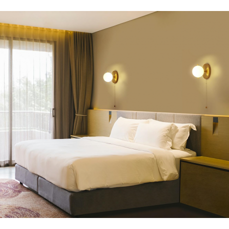 Lampa ścienna ORO złota. Nowoczesna oprawa wykonana z metalu w odcieniu mosiądzu oraz szklanego, mlecznego klosza. Oro jest niezwykle praktyczna poprzez zastosowanie dekoracyjnego włącznika, którym