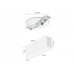 Zasilacz ten podłącza się do końca jednej oprawy szynowej Perifo i do sieci elektrycznej w Twoim domu. Jeden zasilacz pozwala zasilać oświetlenia o mocy do 100 W — aby nie przekroczyć tego progu, wystarczy zsumować moc wszystkich potencjalnie podłączanych opraw. Tylko do oświetlenia szynowego Perifo.