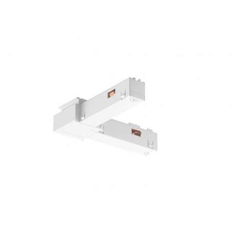 To wewnętrzne złącze narożne pozwala połączyć ze sobą oprawy szynowe Perifo w kształt litery L. Po zainstalowaniu szyna będzie skręcać w prawo lub w lewo, w zależności od umiejscowienia zasilacza. Tylko do oświetlenia szynowego Perifo.