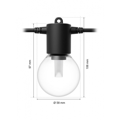Girlanda ogrodowa Festavia może być użytkowana na zewnątrz przez cały rok — w deszczu, słońcu i śniegu. Nie trzeba ich zdejmować po każdym użyciu — raz zamontowane, mogą zostać już na stałe. Każda kulista żarówka ze wzmocnionego szklanego tworzywa jest odporna na zamoczenie, warunki pogodowe i stłuczenie, ale na wszelki wypadek i tak można ją wymienić!