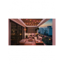 Stwórz przytulną poświatę lub barwną atmosferę imprezową na swoim tarasie, ganku lub w dowolnym innym miejscu na świeżym powietrzu. Ta girlanda z nietłukącymi się żarówkami w kształcie kuli emituje przepiękne światło w nasyconych barwach lub w kolorze bieli i zachwyca niezależnie od tego, czy korzystasz z efektu gradientu, czy też z animowanych efektów świetlnych. Bezpieczny system niskonapięciowy umożliwia podłączenie oświetlenia do istniejącego gniazdka elektrycznego za pomocą dołączonego zasilacza.