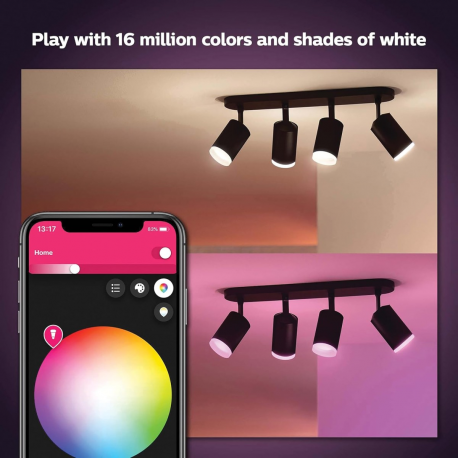 Odmień swój dom dzięki palecie 16 milionów kolorów światła - łatwo i szybko wykreuj atmosferę dopasowaną do każdej okazji. Za pomocą jednego dotknięcia możesz stworzyć odświętny nastrój idealny na domowe przyjęcie, zmienić salon w salę kinową, odmienić wygląd domu za pomocą różnych barw światła i wiele więcej.