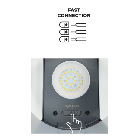 Elegancki kinkiet zewnętrzny MOON z oświetleniem typu downlight idealnie rozświetli przestrzeń wokół domu. Cylindryczny biały dyfuzor tworzy ładne, jednolite światło dzienne (4000 K) lub ciepłe, białe światło (3000 K). Barwę światła można zmieniać za pomocą przełącznika ręcznego zainstalowanego na lampie. Kolor ciemny szary. 5 lat gwarancji.