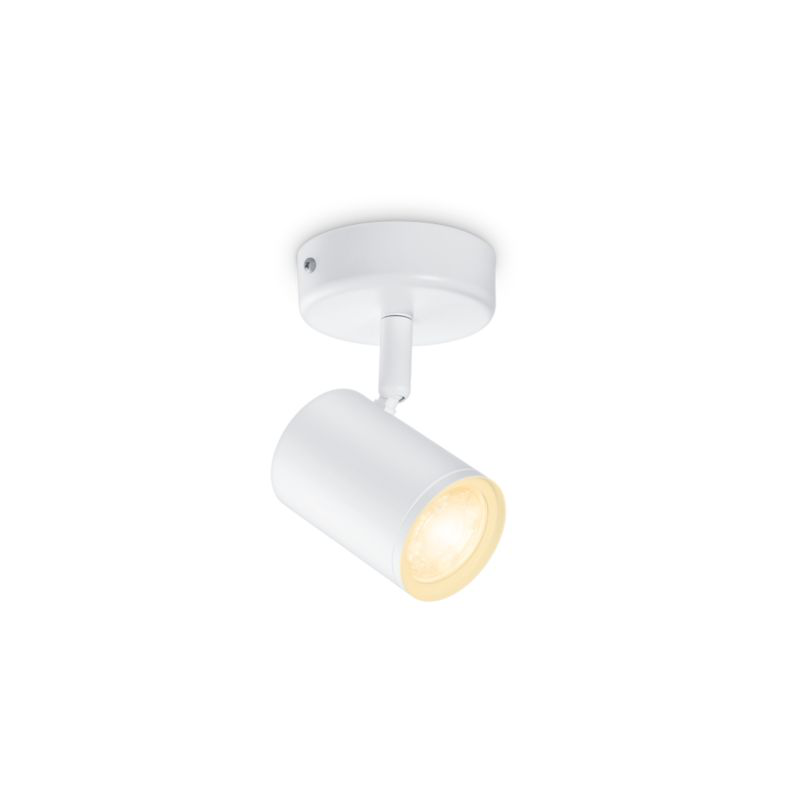 Inteligentny, wbudowany reflektor punktowy WiZ Imageo, zamknięty w eleganckiej i nowoczesnej białej oprawie, świeci jednym regulowanym snopem światła w ciepłej lub chłodnej temperaturze barwowej bieli. Możesz nim sterować za pomocą aplikacji WiZ lub głosem w istniejącej sieci Wi-Fi.