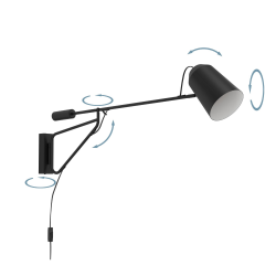 Kinkiet na wysięgniku serii Loreto 1. Lampa ścienna z ruchomym ramieniem, sprawdzi się m.in. jako boczne oświetlenie stołu lub biurka. Lampa w stylu industrialnym odnajdzie się w nowoczesnych wnętrzach. Kinkiet posiada włącznik umieszczony na przewodzie zasilającym. Źródło światła to żarówka na gwint E27, nie stanowi zakresu dostawy.