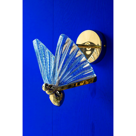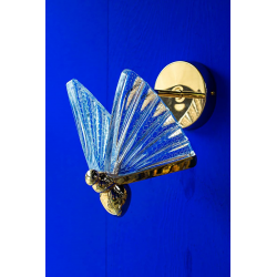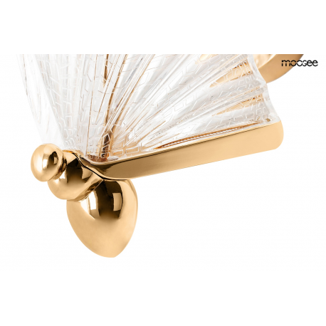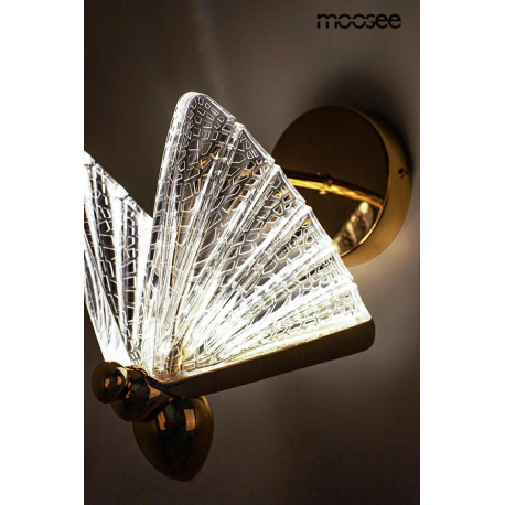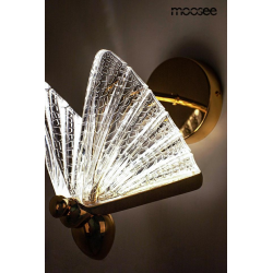 MOOSEE lampa ścienna BUTTERFLY M złota. Designerski motyw lampy wykonany z kryształu i aluminium w kolorze złotym nadaje niesamowity wdzięk każdej przestrzeni. Transparentne skrzydła sprawiają, że n