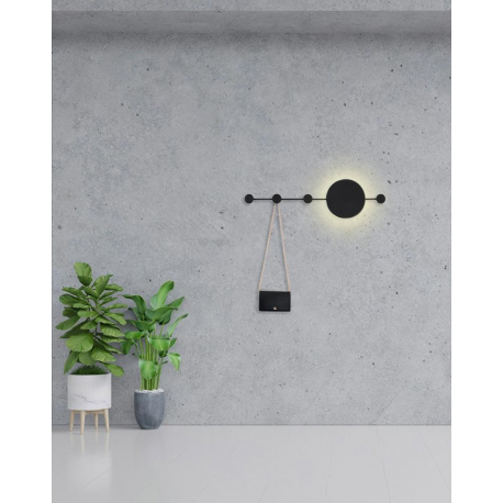 Lampa ścienna z wieszakiem SHADOW HANG. Praktyczne połączenie oświetlenia z funkcjonalnością. Całość wykonana jest z metalu w czarnym, matowym kolorze. Pod okrągłym kloszem znajduje się ledowe źródł