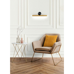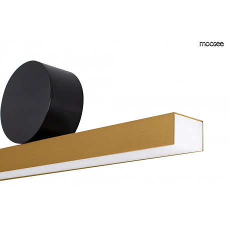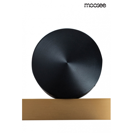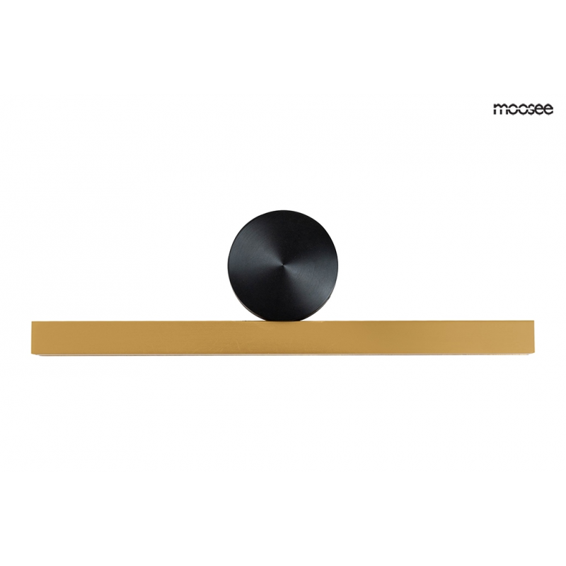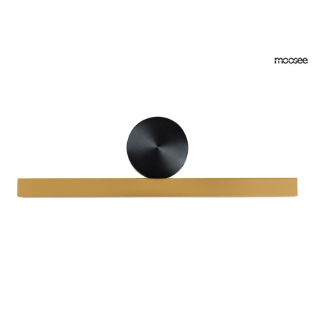 MOOSEE lampa ścienna WAND 45 złota. Podłużny klosz ze stali nierdzewnej o przekroju prostokąta w połączeniu z okrągłą, czarną montaturą tworzy ciekawą i nowoczesną oprawę. Led umieszczony jest pod a