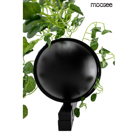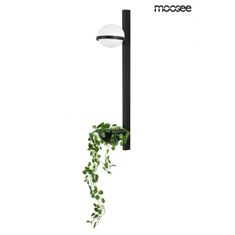 MOOSEE lampa ścienna PLANT WALL czarna.Konstrukcja wykonana z metalu w kolorze czarnym ze szklanym kloszem w kształcie elipsy. Na dole stelaża znajduje się donica na rośliny, dzięki której Plant posłuży jako kwietnik. Sztuczne rośliny znajdują się w zestawie. Akcent florystyczny nadaje lampie niezwykle naturalnego charakteru.Światło: LED 16 W / 1280 lm / 3000 KOprawa: wys. 110 cm / szer. 22 cm / gł. 28,5 cmKlosz: śr. 20 cmDonica: wys.8 cm / śr. 20 cm / gł. 8 cmMocowanie: wys. 110 cm / szer. 3,5 cm / gł. 5,5 cmMontaż: instalacja ściennaŚrednica klosza: 20 cmWaga netto: 6 kgWymiary opakowania: 118 cm / 35 cm / 30 cm.*W kloszu mogą wystąpić pęcherzyki powietrza, które są naturalnym efektem powstałym podczas ręcznej obróbki szkła.