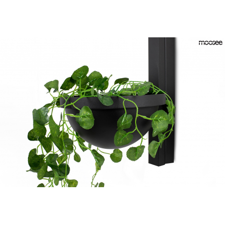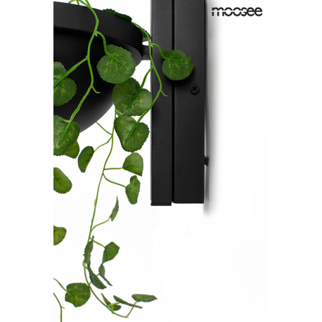 MOOSEE lampa ścienna PLANT WALL czarna. Konstrukcja wykonana z metalu w kolorze czarnym ze szklanym kloszem w kształcie elipsy. Na dole stelaża znajduje się donica na rośliny, dzięki której Plant po