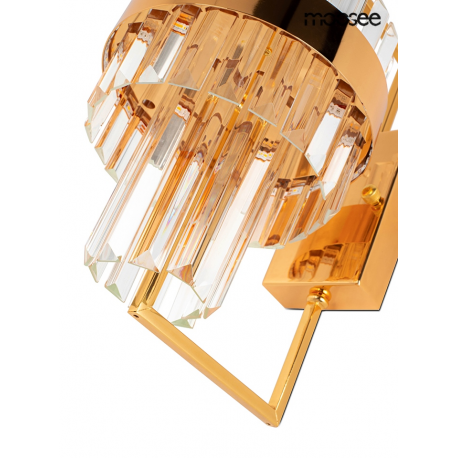 MOOSEE lampa ścienna IMPERO złota. Ten niezwykle szykowny kinkiet doskonale ozdobi wnętrza w stylu Glamour. Głównym elementem dekoracyjnym jest efektowny kryształowy klosz umocowany na prostokątnej