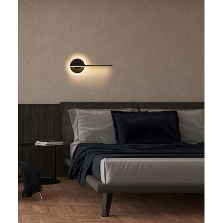 MOOSEE lampa ścienna HORIZON czarna. Prosty kształt i minimalizm skrywa niebanalny wzór padającego cienia. Ciekawy efekt świetlny powoduje zastosowanie światła również na okręgu montatury. Oprawa wy