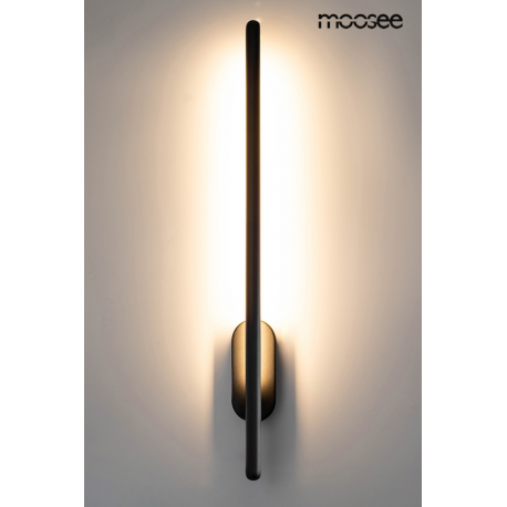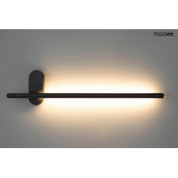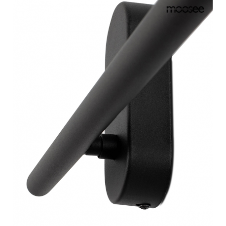 MOOSEE lampa ścienna TOBIA czarna. Oprawa wykonana ze stali w czarnym, stonowanym kolorze. Podłużny klosz można obracać o 360 stopni, dzięki tej funkcji strumień światła ustawimy według własnych pot