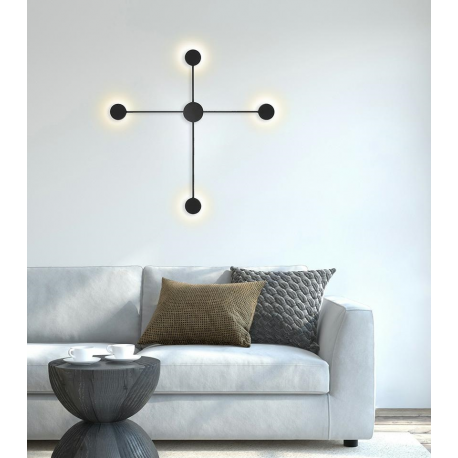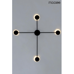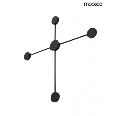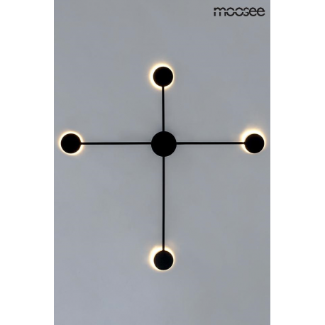 MOOSEE lampa ścienna SHADOW 4 CLOSE czarna.Nowoczesny kinkiet wykonany z metalu w czarnym, matowym kolorze. Shadow można zawiesić również na suficie w formie plafonu. Okrągłe klosze skrywają źródło światła, dzięki czemu strumień świetlny odbija się od ściany. Oprawa tworzy efekt padającego cienia, co jednocześnie w przyjemny sposób oświetla pomieszczenie.Światło: LED 17,3 W / 1380 lm / 3000 KOprawa: wys. 80,5 cm / szer. 80,5 cm / gł. 3,5 cmKlosz: śr. 8 cm / gł. 2,5Mocowanie: śr. 8 cm / wys. 3,5 cmMocowanie koło: śr. 10 cmMontaż: instalacja ściennaWaga netto: 0,5 kgWymiary opakowania: 86 cm / 86 cm / 10 cm.