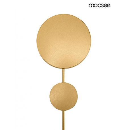 MOOSEE lampa ścienna SHADOW 2 złota. Nowoczesny kinkiet wykonany z metalu i aluminium w złotym kolorze. Shadow można zawiesić również na suficie w formie plafonu. Okrągłe klosze skrywają źródło świa