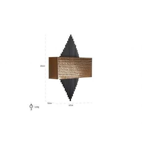 RICHMOND lampa ścienna LOUA jest ciekawym i nietuzinkowym projektem.Oprawa wykonana ze stali w nowoczesnym, modernistycznym stylu zachwyci nie tylko miłośnika designu.Loua oprócz praktycznego zastosowania, wizualnie wzbogaci każdą aranżację.Światło: E27 max.40 W (brak w zestawie)Oprawa: wys. 61 cm / szer. 47 cm / gł. 12 cmMontaż: instalacja ściennaWaga: 3,2 kg.