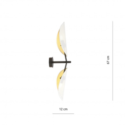 Kinkiet VENE zachwyca lekkością i subtelnością. Idealnie wpasuje się w gusta klientów, ceniących sobie wyjątkowe materiały i oryginalny design w stylu etno. Wyjątkowe abażury w kształcie liści dodają lampie niezwykłej delikatności. Będzie doskonałym elementem dekoracyjnym, tworząc w pomieszczeniu przytulną atmosferę. Najlepiej prezentuje się w salonie lub sypialni i z pewnością przykuje uwagę wszystkich gości. Wykonany z najwyższej jakości materiałów. Produkt w 100% polski. Abażury czarno-złote, biało-złote lub rattanowe.