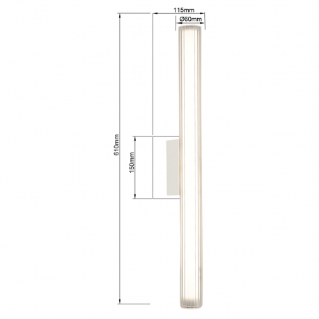Wymiary: Kinkiet posiada szerokość 61 cm, wysokość 11,2 cm. UWAGA! Kinkiet przewidziany jest do montażu zarówno w pionie, jak i poziomie. Doskonale sprawdzi się jako kinkiet nad lustrem łazienkowym, jak i dodatkowe oświetlenie w salonie, sypialni czy korytarzu.