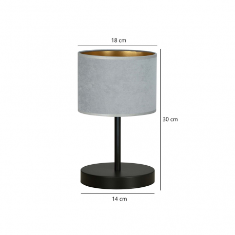 HILDE to lampka nocna z serii lamp abażurowych idealnych do nowoczesnych i klasycznych wnętrz. Doskonale pasują do salonu, sypialni i wszelkich loftowych pomieszczeń, tworząc niepowtarzalny nastrój. Lampka nocna HILDE doskonale spełnia swoją funkcję będąc jednocześnie pięknym elementem dekoracyjnym. Abażury wykonane z trwałego materiału o welurowej fakturze ze złotym środkiem. Prosta konstrukcja i elegancka kolorystyka. Abażury dostępne w kolorze czarnym, białym, szarym, zielonym i różowym. Produkt w 100% polski wykonany z materiałów najwyższej jakości.
