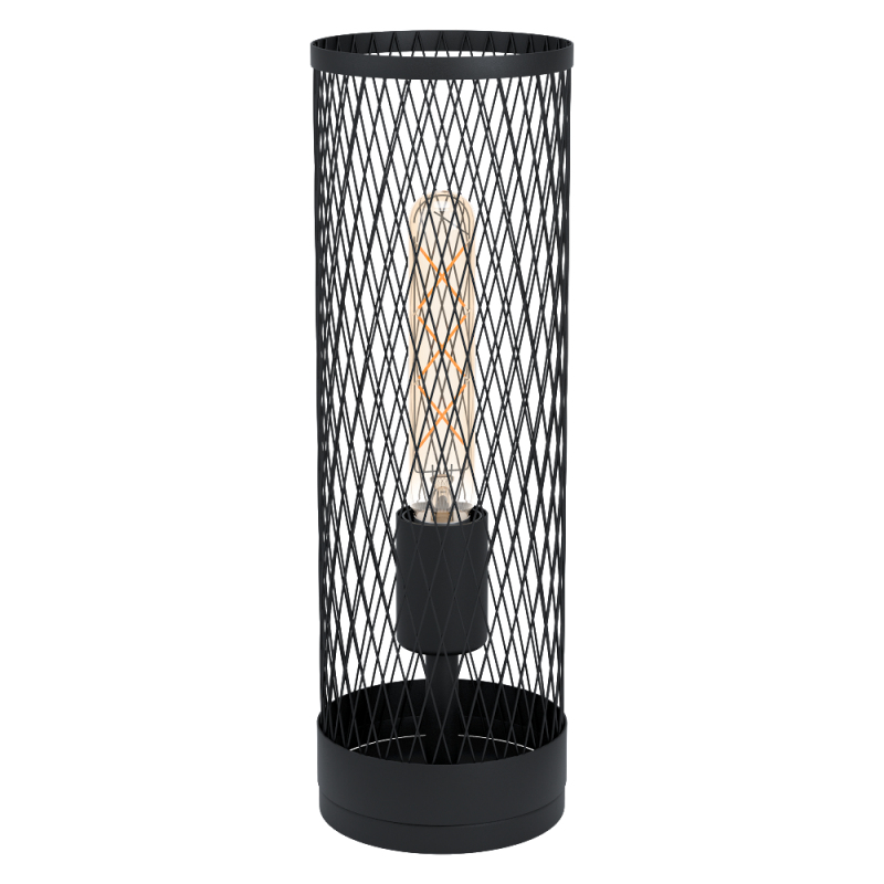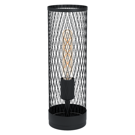 Lampka stołowa REDCLIFFE z czarnym, drucianym, ażurowym kloszem.