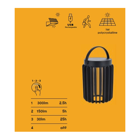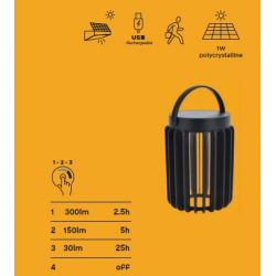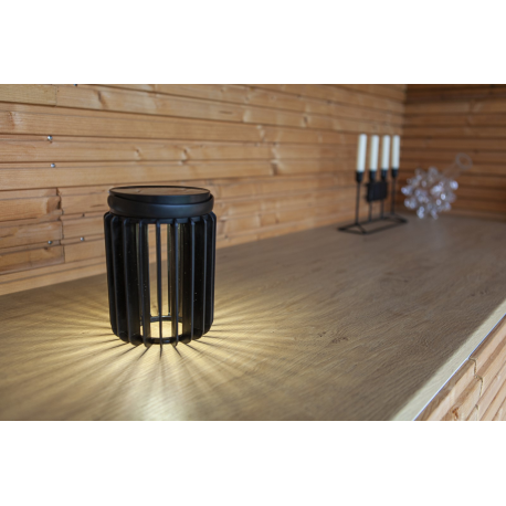 Solarna lampa stołowa KOZY tworzy delikatny i niepowtarzalny klimat. Doskonała do przekształcenia stołu ogrodowego lub tarasu w przytulne, rodzinne miejsce i to przez całą noc. Istnieje możliwość ładowania za pomocą USB. Kolor czarny