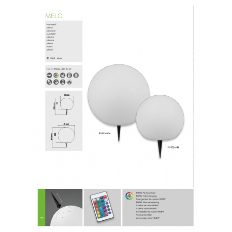 MELO Wyposażony w zintegrowany czujnik zmierzchu. Pilot w zestawie. RGBW. Kolor biały Nie współpracuje z zewnętrznym ściemniaczem.