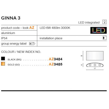 GINNA 3 KINKIET ZEWNĘTRZNY LED AZ3485 AZZARDO