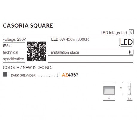 CASORIA SQUARE IP54 KINKIET ZEWNĘTRZNY AZZARDO AZ4367