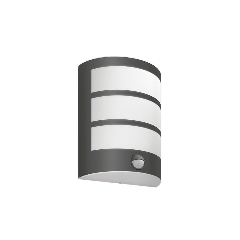 Dołączony do zestawu czujnik ruchu automatycznie włącza światło po wykryciu aktywności. Lampa zaświeci się więc, gdy wrócisz wieczorem do domu lub gdy przybędzie ktoś inny.