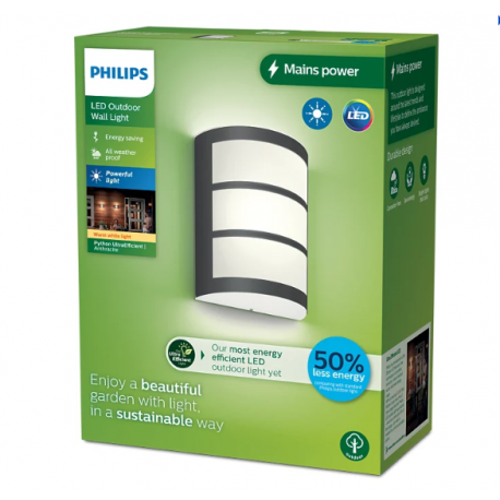 Ta oprawa zewnętrzna firmy Philips emituje mocne światło. Jasny strumień światła odpowiednio oświetli Twój ogród lub taras.