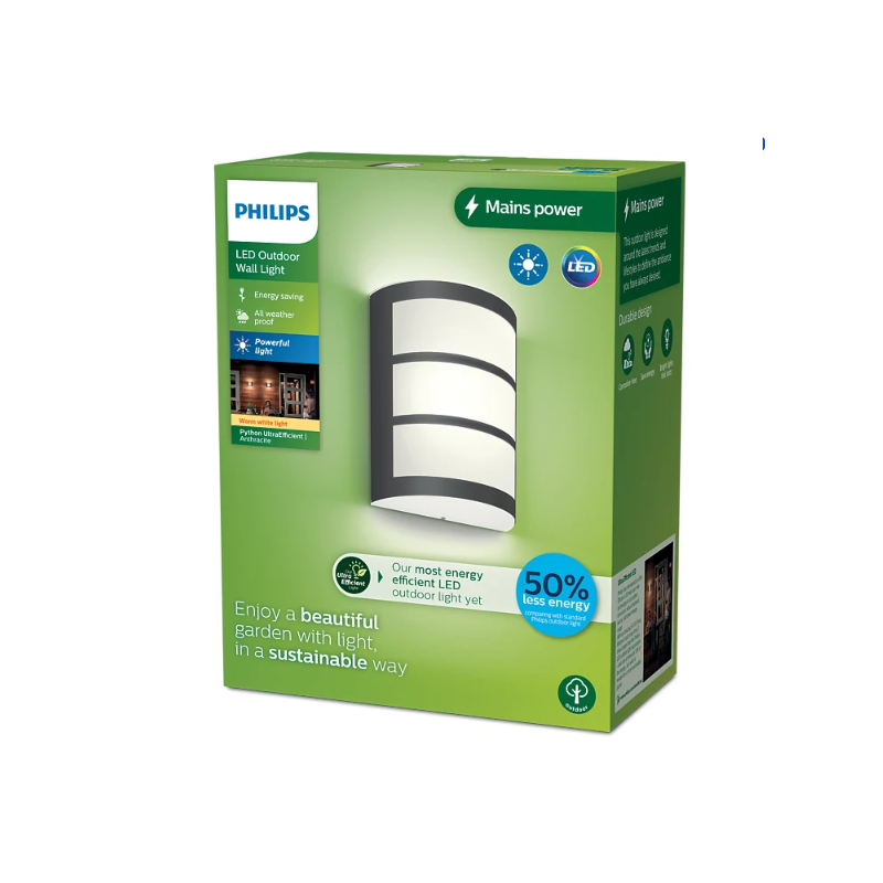 Ta lampa zewnętrzna firmy Philips została zaprojektowana specjalnie do wilgotnych środowisk zewnętrznych i rygorystycznie przetestowana pod kątem wodoodporności. Stopień ochrony IP44 oznacza, że uzyskała certyfikat potwierdzający ochronę przed kurzem i wodą rozpryskową — nadaje się więc idealnie do ogólnego użytku na zewnątrz.