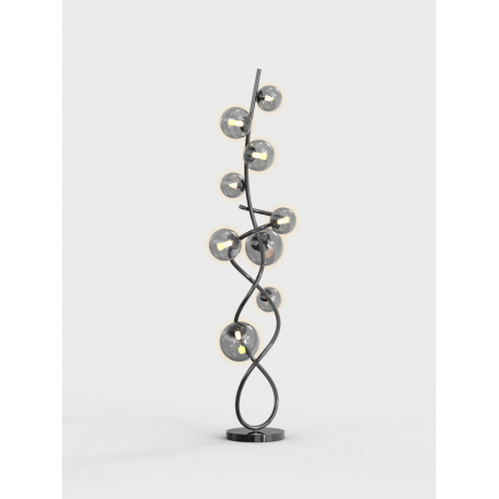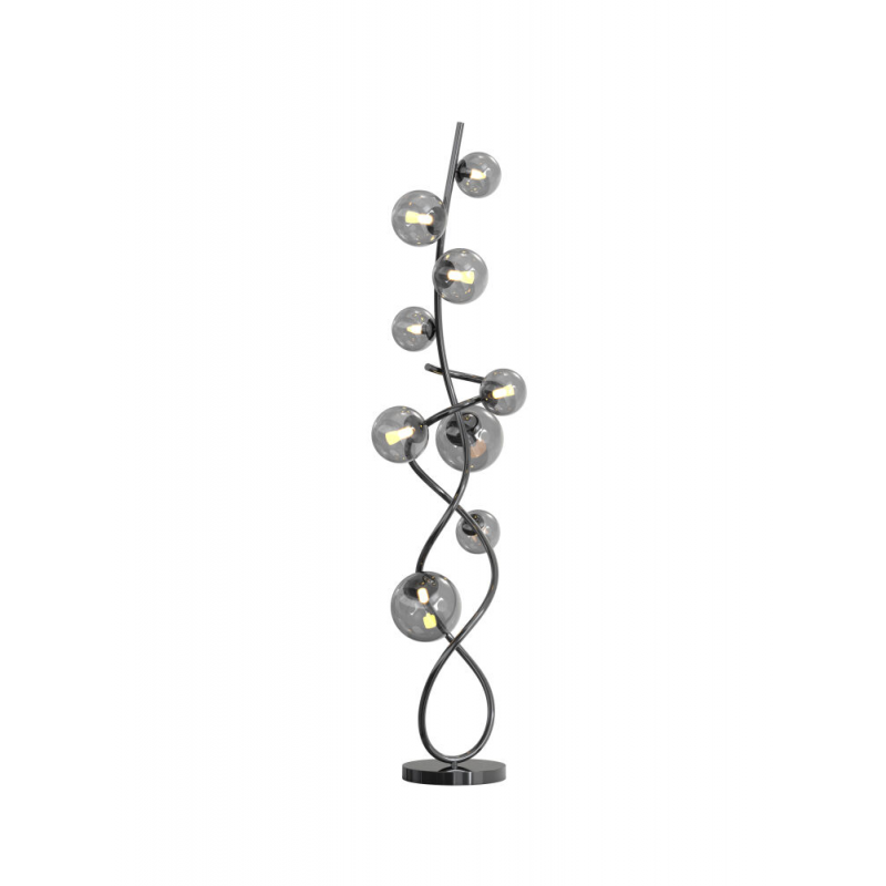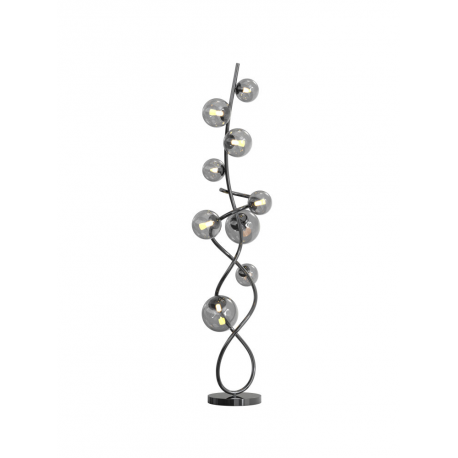 Ta wspaniała lampa podłogowa z pewnością dodaje wyrafinowania i uroku do Twojego wnętrza. Oferuje wyjątkowy design w kolorze czarnego chromu, który świetnie pasuje do każdego wystroju.