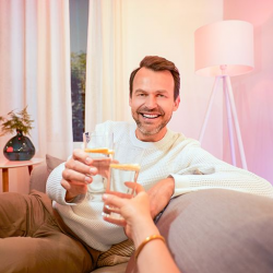 Światłami WiZ można sterować z dowolnego miejsca za pomocą smartfonu. Jeśli wychodząc z domu, zapomnisz zgasić światła, nie musisz się martwić. Aplikacja WiZ jest dostępna na telefony z systemami iOS i Android.
