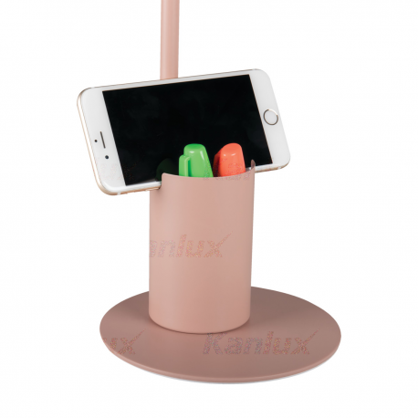 Kanlux RAIBO to modna retro lampka biurkowa. Dostępna jest w 4 pastelowych kolorach, jak i w popularnej czerni i bieli. W podstawie wbudowany jest organizer z uchwytem, w który możemy odłożyć telefon, długopisy czy okulary. Duży klosz, w którym zmieścimy żarówkę o trzonku E27 to szeroki rozsył światła. Widoczny jest tu wpływ retro, ale również dbałość o szczegóły i solidne wykonanie (stal). Zwróciliśmy też uwagę na spód lampki i dodaliśmy piankową podkładkę, aby lampka nie rysowała biurka.
