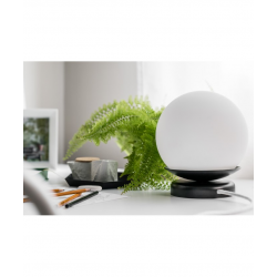 Największa szklana kula o średnicy 30 cm, zastosowana w lampie Kuul E, doskonale sprawdzi się jako lampa nad stołem w jadalni. Można wykorzystać ją pojedynczo lub w towarzystwie mniejszych sióstr o średnicy 15 cm (Kuul F). Z kolei kinkiet Kuul D/D1 znakomicie oświetli Twoje ulubione miejsca do czytania książek. Całość dopełni lampka stojąca. W ciągu dnia lampy przypominają śnieżnobiałe kule, a wraz z nadejściem wieczoru wypełniają pokój przyjemnym, naturalnym światłem.