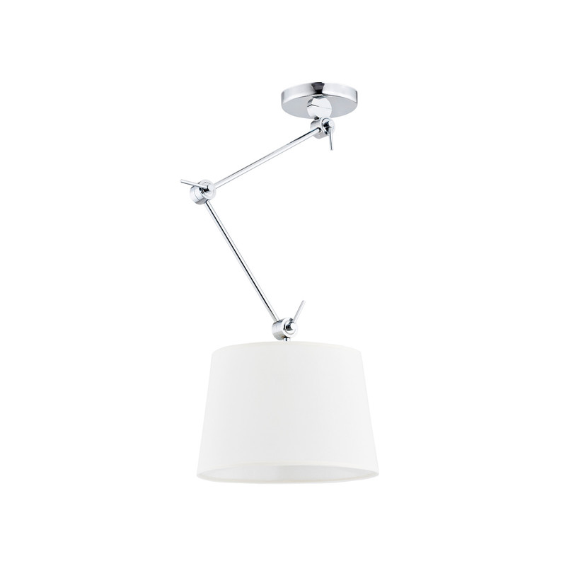 Elegancka seria zwisów i kinkietów jednopłomiennych. Abażury lamp Zakyntos dostępne są w kolorze białym, beżowym oraz czarnym. Swoją dostojną formę zawdzięczają łamanemu ramieniu, które jest wykonane z metalu w kolorze chromu. Pozwala to na dość swobodną regulacje położenia lampy. Kolekcja Zakyntos świetnie sprawdzi się w sypialni, a kinkiety będą bardzo funkcjonalne jako lampki nocne przy łóżku.