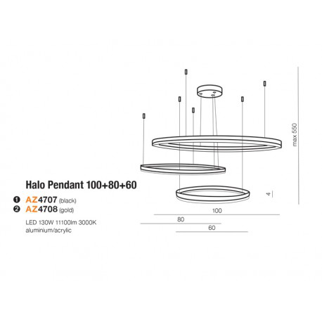 HALO 100+80+60 BK LAMPA WISZĄCA LED AZZARDO AZ4707