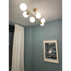 Dorado 4 wisząca - oświetlenie przypominające produkt o nazwie Alisa, aczkolwiek ten ma mniejszą ilość kul, bo 4 klosze, a nie 6 jak proponuje Alisa. Dorado jest lampą dość długą, dzięki takiej ilości źródła światła, zapewnia korzystne oświetlenie w salonie, jadalni czy biurze. Kule jakie posiada Dorado, nadają się do wielu wystrojów wnętrz, jest ponadczasowy. Jednakże dzięki, różnym kierunkom padania światła oraz metalowemu czarnemu stelażowi, stanowi niebanalną propozycję oświetlenia. W asortymencie posiadamy również inne propozycje lamp z serii Dorado. Oprócz lamp wiszących tego typu, znajdziecie Państwo także kinkiety, które w komplecie mogą nadać zupełnie inny powiew w Państwa domu. Występują też oświetlenia Dorado z mniejszą ilością kul, a te będą świetną alternatywą dla mniejszych pomieszczeń takich jak przedpokój.