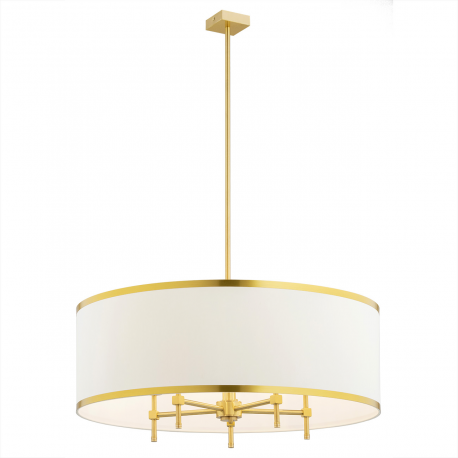 Wyrafinowany żyrandol do salonu. Olbrzymia lampa wisząca z abażurem. Żyrandol pięciopłomienny polskiej produkcji ze stelażem z mosiądzu