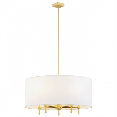 Wyrafinowany żyrandol do salonu. Olbrzymia lampa wisząca z abażurem welurowym. Żyrandol pięciopłomienny polskiej produkcji ze stelażem z mosiądzu