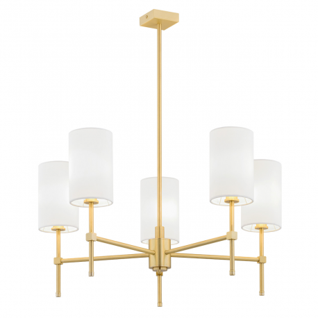 Wyrafinowany żyrandol do salonu. Olbrzymia lampa wisząca z abażurami. Żyrandol pięciopłomienny polskiej produkcji ze stelażem z mosiądzu.Stylowa lampa glamour polskiej produkcji
