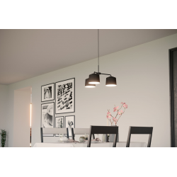 Lampa wisząca CAGUANES wykonana jest z trzech okrągłych kloszy z czarnej tkaniny z białym wnętrzem. Tekstylne klosze zawieszone są na okrągłym metalowym daszku tego samego koloru za pomocą czarnego tekstylnego kabla. Dzięki specjalnemu zawieszeniu przytulna lampa wisząca przypomina mobile i oferuje stylowe i nowoczesne oświetlenie w każdym pomieszczeniu - czy to w salonie, czy w jadalni nad stołem jadalnym. Żarówki nie wchodzą w zakres dostawy. Lampa nadaje się do każdej lampy z trzonkiem E27.