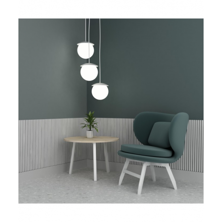 Największa szklana kula o średnicy 30 cm, zastosowana w lampie Kuul E, doskonale sprawdzi się jako lampa nad stołem w jadalni. Można wykorzystać ją pojedynczo lub w towarzystwie mniejszych sióstr o średnicy 15 cm (Kuul F). Z kolei kinkiet Kuul D/D1 znakomicie oświetli Twoje ulubione miejsca do czytania książek. Całość dopełni lampka stojąca. W ciągu dnia lampy przypominają śnieżnobiałe kule, a wraz z nadejściem wieczoru wypełniają pokój przyjemnym, naturalnym światłem.