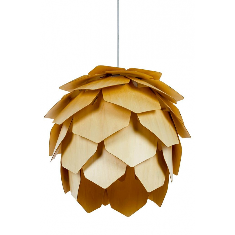Lampa wisząca SZYSZKA CONO 43.W całości wykonana została ze sklejki w kolorze naturalnego drewna.Oprawa kształtem przypomina szyszkę, co wprowadza do aranżacji leśny klimat.Światło: E27 max. 40 W (brak w zestawie)Oprawa: wys. 250 cm / szer. 40 cm / gł. 40 cmKlosz: wys. 40 cm / szer. 40 cmMocowanie: śr. 8 cm / wys. 3,5 cmPrzewód: 210 cmMontaż: instalacja sufitowaWaga netto: 7 kg.