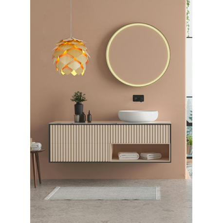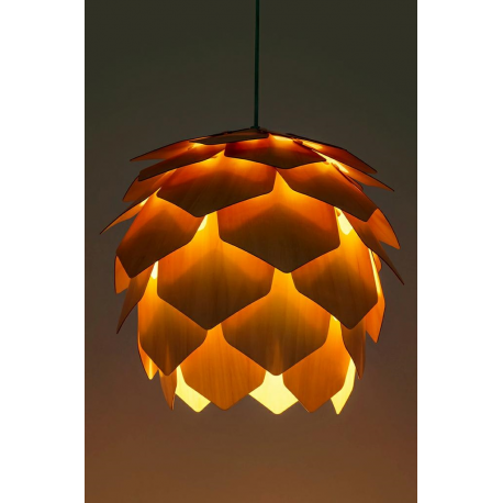 Lampa wisząca SZYSZKA CONO 43. W całości wykonana została ze sklejki w kolorze naturalnego drewna. Oprawa kształtem przypomina szyszkę, co wprowadza do aranżacji leśny klimat. Światło: E27 max. 40 W