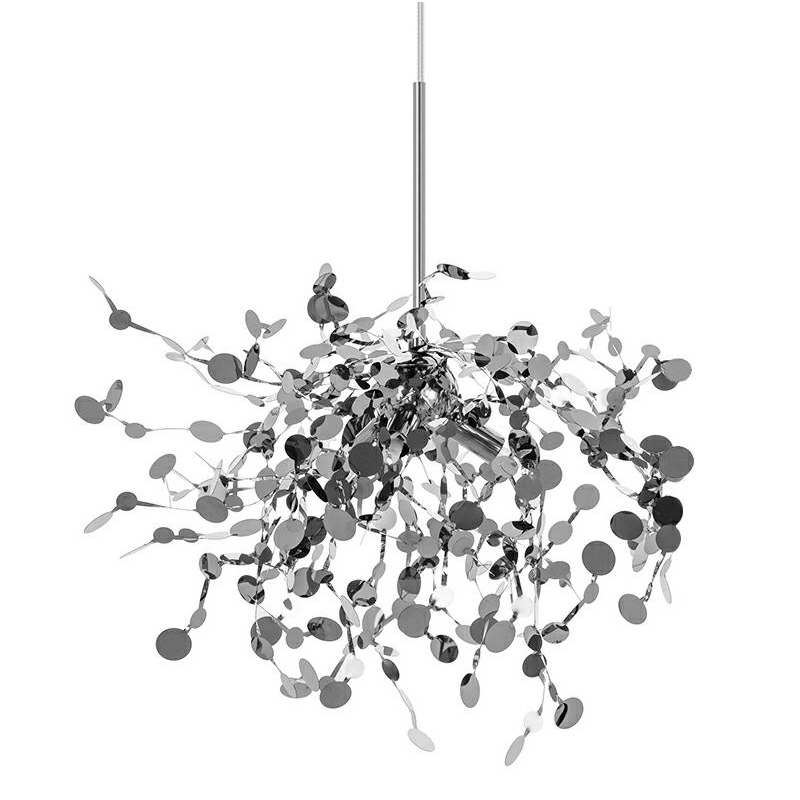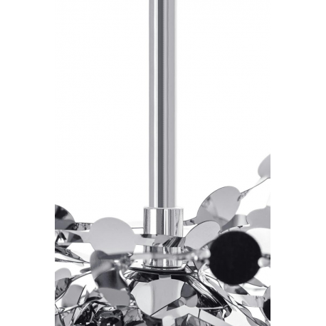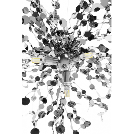 Lampa wisząca Monete chromowana. Wyjątkowo ciekawa lampa która przykuwa uwagę i pobudza kreatywność. Konstrukcja lampy wykonana została z chromowanego metalu. Klosz przypominający swoim wyglądem, ga