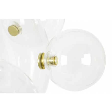 Do głównych kloszy doczepione są pozostałe kule za pomocą mocowań w kolorze złotym.