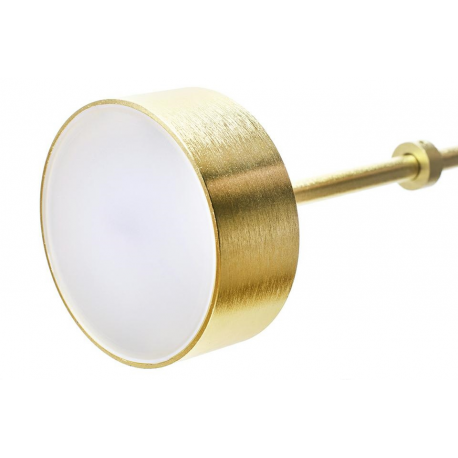 Wewnątrz każdej z kul jest złoty, szczotkowany pręt zakończony źródłem światła LED.